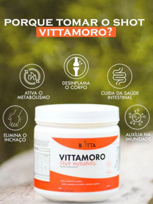 Está com o metabolismo lento e não consegue emagrecer? Conheça o VITTAMORO, um shot inovador que combina ingredientes selecionados para desinflamar, auxiliar na imunidade e promover o bom funcionamento do intestino. Além disso, é um aliado eficaz no tratamento da celulite e na queima de gordura, potencializando seu processo de emagrecimento.